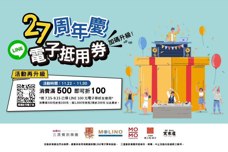三澧27週年慶 電子抵用券 加碼升級!